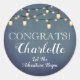 Etiquetas de aposentadoria de surpresa azuis elegantes para selagens de envelopes ou bolsas de presentes, com luzes de cordas brilhantes e uma combinação de guião e tipografia de rosto aberto em um fundo ombre azul-escuro que se forma de azul-claro no centro para azul-escuro nas bordas externas para um efeito atmosférico suave. Perfeito para a celebração da aposentadoria masculina ou feminina.