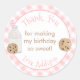 Adesivo Redondo Partido Leite E Cookies Rosa Gingham Obrigado