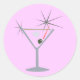 design de vidro martini em estilo anos 50 digno do Rat Pack, completo com palhetas dentárias, azeitona e um cubo de gelo solteiro.