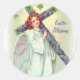 Linda arte de Páscoa de vintage apresenta um adorável carregando Angel uma Cruz coberta com flores Hydrangea. O texto pode ser personalizado ou removido.