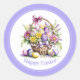 O adesivo de páscoa é mostrado com um adorável impressão de cesto floral. Lavanda de cores Personalizar ou comprar como está.