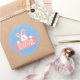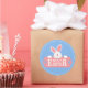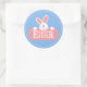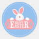 Vinheta de férias de páscoa mostrada com um impressão de coelho de Páscoa festivo. Personalizar ou comprar Cor Azul e Rosa como está.