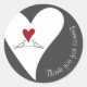 Adesivo Redondo Pássaros de Amor Simples Modernos e Coração Vermel