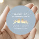 Elegante obrigado de casamento redondo, você cola com dois pássaros dourados em um fundo azul macio e poeirento com "Obrigado por comemorar conosco" acima de seus nomes e data de casamento. Um belo toque final para selar bolsas, caixas de presentes ou envelopes. Perfeito para primavera, verão ou casamentos outono iniciais com designs românticas, pastéis ou com temas de pássaros. Totalmente personalizável para coordenar com a sua suíte de casamento azul e ouro empoeirada.