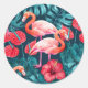Adesivo Redondo Pássaros Flamingo e aquarela de jardim tropical