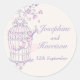 Adesivo Redondo Pássaros roxos e rosados abrem a gaiola.