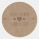 Um adesivo de casamento ao ar livre com ilustração de um coração entre duas setas. O fundo é de papel marrom inspirado. Personalize o texto com seus nomes.