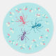 As formigas bonitas colam em tons pastéis apresentando uma ilustração vetorial de três formigas em cor azul, roxa e rosa cercadas por folhas coloridas sobre fundo azul claro. esta design bonito e divertida apelará a uma pessoa que ama esses insetos incríveis, a vida selvagem e a natureza.