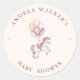 Adesivo Redondo Pastel Pink Cute Horse Balloons Girl Baby Shower