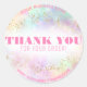 Esses adesivos vibrantes "obrigado você para o seu pedido" apresentam texturas de cristal opalescente do arco-íris pastel e embelezamento dourado. Perfeito para uma pequena empresa ou fornecedores justos!