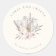 Um elegante autocolante para padeiros, cozinheiros e padarias, com utensílios de aquarelas, embelezados com flores de cor rosa suave e violeta e botânica.