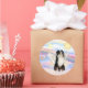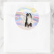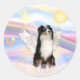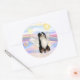 Um pastor australiano de três cores testa suas asas entre as nuvens desfocadas do céu antes que eles sejam livres para entrar na Ponte do Arco-íris onde anjos e amigos esperam.l