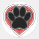 Uma pata de cachorro do estilo cartoon imprime em um coração vermelho com contornos em preto. Design original para pessoas que amam cachorros.