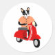 Veja Boston Terrier cavalgando seu patinete vermelho de vintage! Esta ilustração de Boston Terrier seria excelente para fãs de cães e cachorros.