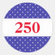 In celebration of the USA's 250th anniversary, 250 appear in red letters. Can be customized with desired text. A blue background with white stars is above and below a white stripe.