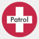 Vinheta vermelha com cruz branca. "Patrol" está em cruz branca.