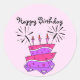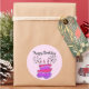 Púrpura e rosa, vinheta de bolo de aniversário. Esses adesivos divertidos podem ser personalizados com uma mensagem ou o nome do seu filho usando o modelo pré-fabricado. Use estes adesivos úteis como favores de festa de aniversário ou seladores de envelopes.