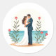 Inclui 20 pequenos adesivos numa única folha. Uma ilustração digital charmosa de noiva e noiva em vestidos de casamento compartilhando um momento delicado em uma praia serena, cercada por flores de lótus cor-de-rosa, ideal para personalizar itens relacionados ao casamento.