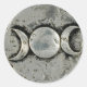 Um adesivo redondo com a imagem de um símbolo da Deusa Tripla do Pewter. A Deusa Tripla é um conceito na Wicca e em outros sistemas de crenças neopagan: às vezes, uma "Deusa Excelente" universal, global e tripla; às vezes uma deusa solteiro como donzela, matrona e coroa; e às vezes três irmãs. Veja confetti correspondente, etiqueta de favor, etiqueta e papel de embalagem. Veja toda a coleção do adesivo Deusa nos CONVITES | Seção Stickers & Labels