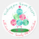 Uma árvore de Natal feita com bolas de fio colorido neste lindo Natal "feito à mão com amor" para/de adesivos para tricô e projetos de artesanatos de crochê.