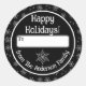 Adesivo Redondo Pau Preto Feriado Feliz com Flocos de Neve