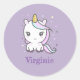 Um adesivo roxo com um unicórnio bonito em cor pastel e um nome próprio personalizável para adicionar a todos os seus assuntos e cartas!