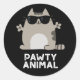 Adesivo Redondo Pawty Animal Funny Party Cat Pun Dark BG