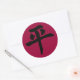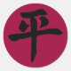 Um adesivo redondo com uma imagem do símbolo chinês para a paz em vermelho. Veja confetti correspondente, etiqueta de favor, etiqueta e papel de embalagem. Veja toda a coleção do Inalador nos CONVITES | Seção Stickers & Labels