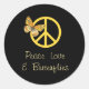 Grande símbolo amarelo de paz reconhecido em todo o mundo, com borboleta amarela sobre fundo preto. O texto "Amor de paz e borboletas" é personalizável