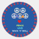 Adesivo Redondo Paz, Amor e Rock 'n' Roll
