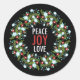Adesivo Redondo Paz Amor Joy Wreath no Fundo Negro