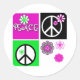Nossas T-shirts design da Paz de Cores Quentes, sacos de tote, mousepads, botões, ímãs e outros itens apresentam verde limão quente, flores pretas e rosa-quente e símbolos de paz e uma mensagem para promover a paz mundial!