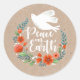 Um bonito adesivo de presente de Natal com uma pomba em uma coroa floral com as palavras Paz na Terra. O adesivo de Natal é desenhado em kraft, vermelho e branco. Perfeito para os presentes de Natal este ano. Projetado para você pelo Blackberry Boulevard.