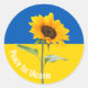 Adesivo Redondo Paz para a Ucrânia Bandeira de Girassol Amarelo e