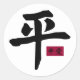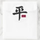 Um adesivo branco redondo para combinar o nosso cartão "Peace 2" com uma imagem do personagem chinês para a paz e um pequeno retângulo vermelho que contém os caracteres para a paz e o amor. Ver vinilheta, cartão, envelope, etiqueta de favor e etiqueta correspondente. Veja toda a coleção do Inalador nos CONVITES | Seção Stickers & Labels