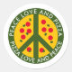 Peace Love and Pizza, festa personalizada engraçada a favor do Classic Round Sticker. Símbolo de paz bonito com fatias de pontos de pizza. Faça seu próprio material de festa para o aniversário da criança, casamento, reunião, reunião, celebração, CHURRASCO e muito mais. Adicione seu próprio texto personalizado. Design de comida de de cozinha italiana com uma citação humorística. Excelente também para cozinheiro, cozinheiro ou pizzaria no restaurante pizzaria.