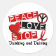 Adesivo Redondo Peace Love Stop Bebendo and Drivers
