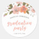 Este adesivo circular de Festa de formatura flórica delicada apresenta uma delicada cor-de-água floral com as palavras "Festa de formatura" no guião de pêssego da moenda. Personalize-o com seus detalhes substituindo o texto do marcador de posição. Para obter mais opções, como alterar a fonte, o tamanho/cor do texto, o espaçamento entre letras ou para contrair ou expandir o texto curvo, clique no botão "Personalizar". *Observe que a Marca d'água do Zazzle que aparece na visualização de zoom NÃO aparecerá no produto impresso final. © Rosewood e Citrus