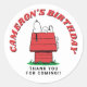 This is an incredibly sweet and cute round party sticker, perfectly sized for sealing up treats or gifts. At its heart is the classic, beloved Snoopy, who is captured in his favorite, most relaxed pose: napping peacefully atop his vibrant red doghouse. Featuring a clean white background and the timeless appeal of the vintage cartoon art, this accessory adds a delightful, cheerful touch to any item. It's the perfect finishing seal for any child's party favor!