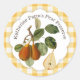 Rótulo de geleia de pera em estética de safra com fundo clássico de gingham.