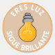 Diseño único y motivador: La pegatina presenta un bombillo iluminado con la frase "Eres luz. Sigue brillando" en letras llamativas, creando una imagen simple pero poderosa.