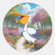 Adesivo Redondo Pelicano de desenho animado bonito com peixes, pás