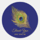 Adesivo Redondo Pena de pavão dourada Agradecimento em Azul Marinh