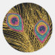 Adesivo Redondo Penas de Peacock Douradas com "Glitter Faux"