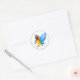 Este adesivo de forma redonda é mostrado com um impressão de papagaio bonito. Personalizar ou comprar como está.