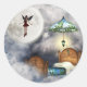 Fada dos dentes contra a lua, voando sobre a cama vazia de uma criança.
