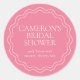 Perfeito para chás de noiva de jardim na primavera ou verão, este design elegante apresenta uma borda ondulada de conchas em um fundo rosa brilhante. Personalize estes adesivos de chá de noiva com o nome do seu evento, a data e o ano.