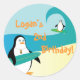 Adesivo Redondo Pepe Surfer Penguin Little Kid Birthday Sticker