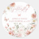 Adesivo Redondo Pequena Borboleta Rosa Floral Chá
