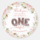 Pequena Miss Onelinda obrigado seus adesivos. Tão fácil editar o modelo para o seu próprio nome. Bonito florais de aquarela com UM soletrado em letras de balão. Pequena Senhorita primeiro aniversario Maravilha Obrigado Clássicos Pinheiros Redondos.